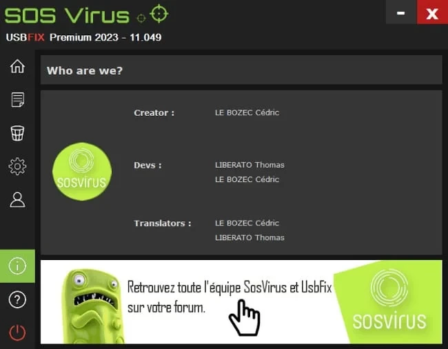USBFix разработан компанией SOSVirus специально для борьбы с вредоносными программами, распространяющимися через USB-носители, известными как вирусы-ярлыки. Инструмент блокирует заражение, передающееся с компьютера на компьютер, восстанавливает поврежденные функции безопасности, реестра и диспетчера задач, скрывает файлы и т.д. Кроме того, он постоянно обновляется и информирует о любых новых угрозах. Сервис предлагает онлайн-справочную службу технической поддержки с высококвалифицированными специалистами, которые ответят на ваши вопросы.